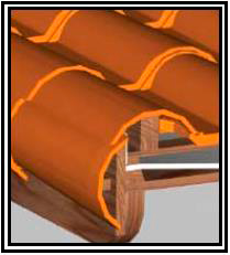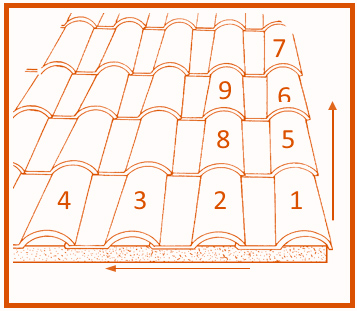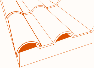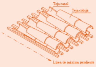 Tejas de canal (boca arriba): Coloque las tejas de canal con el lado angosto hacia abajo y el lado ancho hacia arriba para asegurar un buen drenaje.