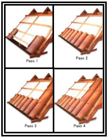 La separación entre las reglas en la estructura debe ser de 13.5 cm para la teja árabe de exportación y la teja árabe recortada.
